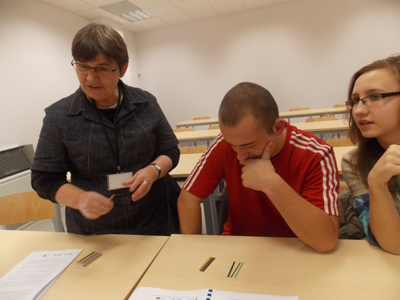 Pierwszy zajęcia były na temat "Paradoksów rachunku prawdopodobieństwa", które poprowadził Pan dr Krzysztof Bryś. W trakcie zajęć uczniowie zapoznali się i oswoili z rachunkiem prawdopodobieństwa. Przekonali się o tym, że intuicyjne podejście do wyznaczania prawdopodobieństwa prowadzić może do niepoprawnych wyników. Mogli spróbować wyrobić w sobie umiejętność stosowania poznanych metod obliczania prawdopodobieństwa w życiu codziennym.